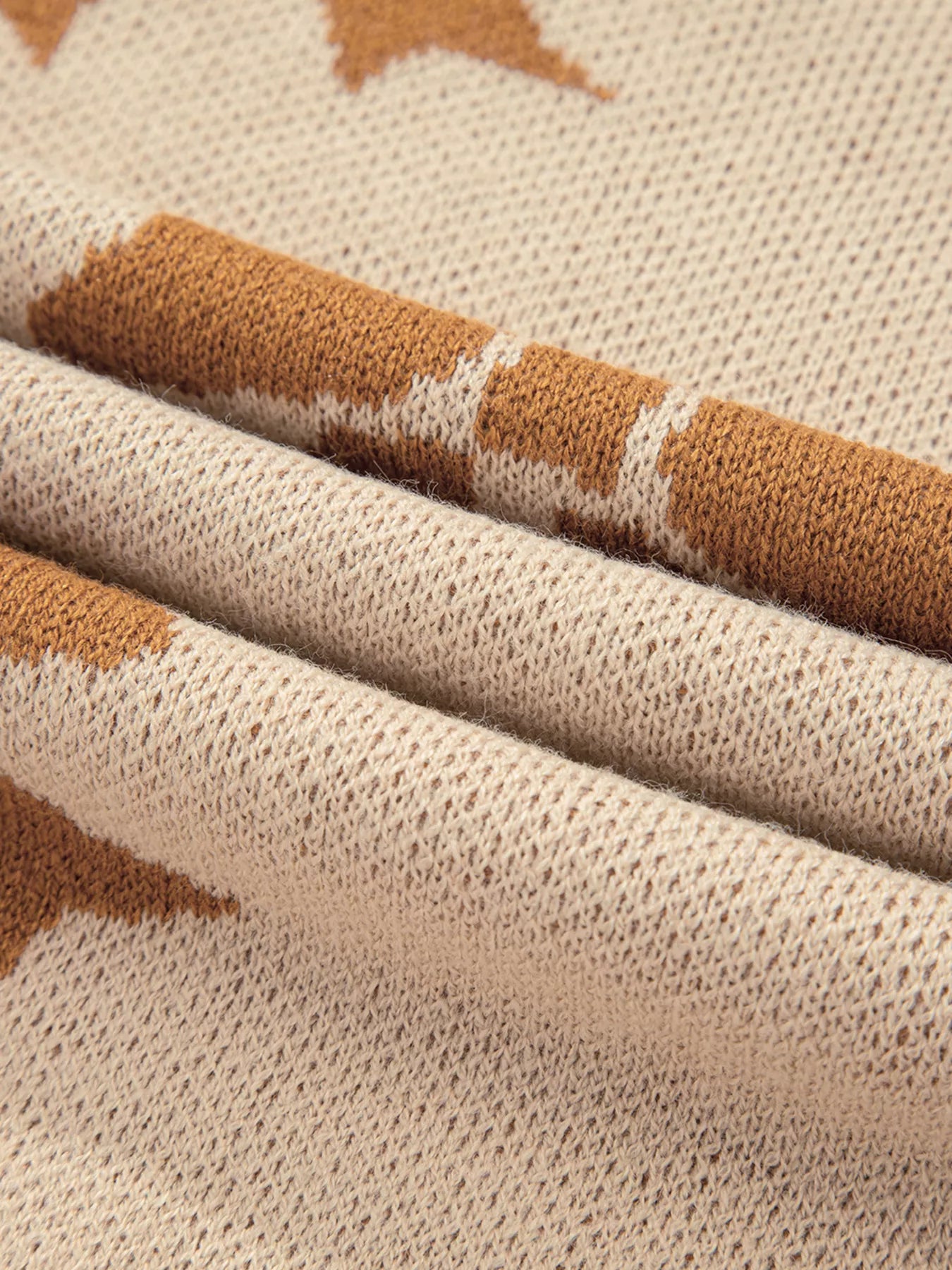 Pumpkin Checkered Round Neck Long Sleeve Sweater Pumpkin Checkered Round Neck Long Sleeve Sweater